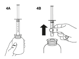 Turn the bottle the right way up (figure 4A). Remove the syringe from the adaptor (figure 4B).