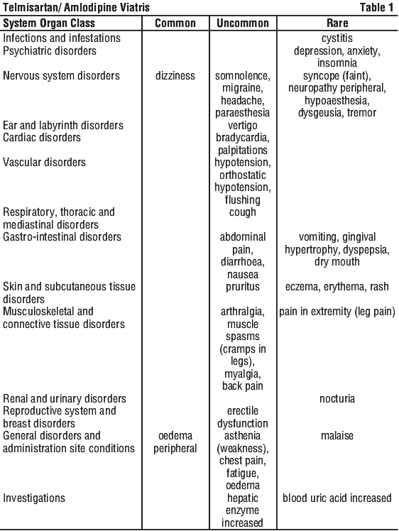 Oedema related events (peripheral oedema, generalised oedema, and oedema) were significantly lower in patients who received telmisartan/ amlodipine (40/5 mg or 80/5 mg) as compared to patients who received amlodipine 10 mg (4.4% vs. 24.9%, respectively).