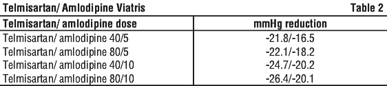 Telmisartan/ Amlodipine Viatris may be administered in patients whose blood pressure is not adequately controlled with amlodipine or telmisartan alone.
