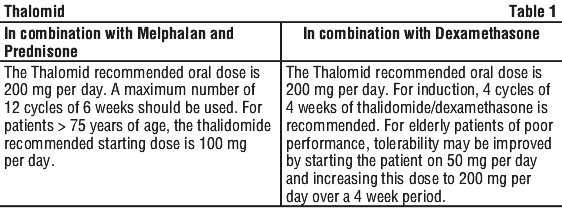- Your doctor will choose the dose for you, monitor your progress and may adjust your dose. Your doctor will tell you how much THALOMID to take and for how long you will need to take it.