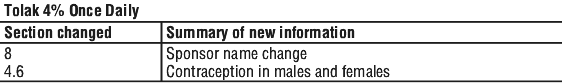 For more information, see Section 5. What should I know while using TOLAK 4% ONCE DAILY? in the full CMI.