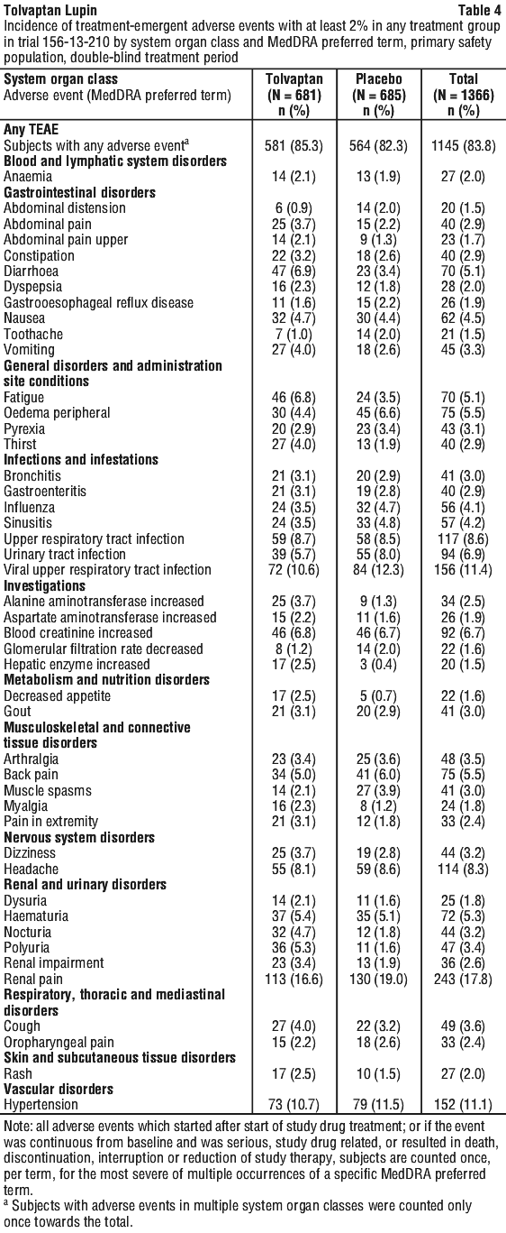 For more information, see Section 5. What should I know while using Tolvaptan Lupin? in the full CMI.