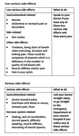 During treatment, you may be at risk of developing certain side effects. It is important you understand these risks and how to monitor for them. See additional information under Section 6. Are there any side effects?
