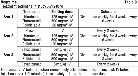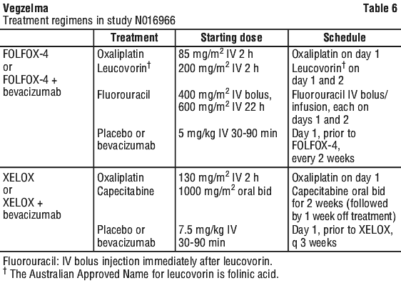- Your dose depends on your body weight and the type of cancer to be treated. VEGZELMA can be given either once every 2 weeks or once every 3 weeks. Your doctor will prescribe a dose of VEGZELMA that is right for you.