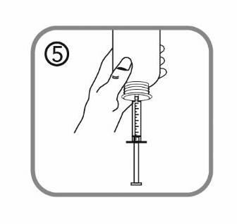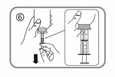 - Pull the plunger down to fill the oral syringe with a small amount of solution (6).
