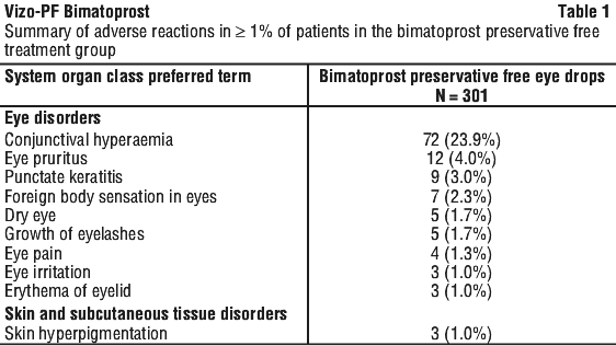 Check with your doctor as soon as possible if you have any problems while taking Vizo-PF Bimatoprost eye drops, even if you do not think the problems are connected with the medicine or are not listed in this leaflet.