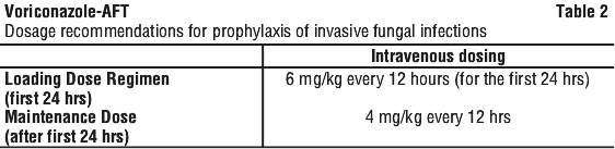 The study results showed that 4 mg/kg by intravenous (IV) administration twice daily in children achieved exposure comparable to that in adults receiving 3 mg/kg IV twice daily. The average voriconazole exposure in children receiving 6 mg/kg IV doses twice daily was slightly lower than in adults receiving 4 mg/kg IV doses twice daily. Based on the data, physicians may initiate therapy in children with 6 mg/kg IV twice daily. The dose may be increased to 7 mg/kg IV twice daily if clinically indicated.