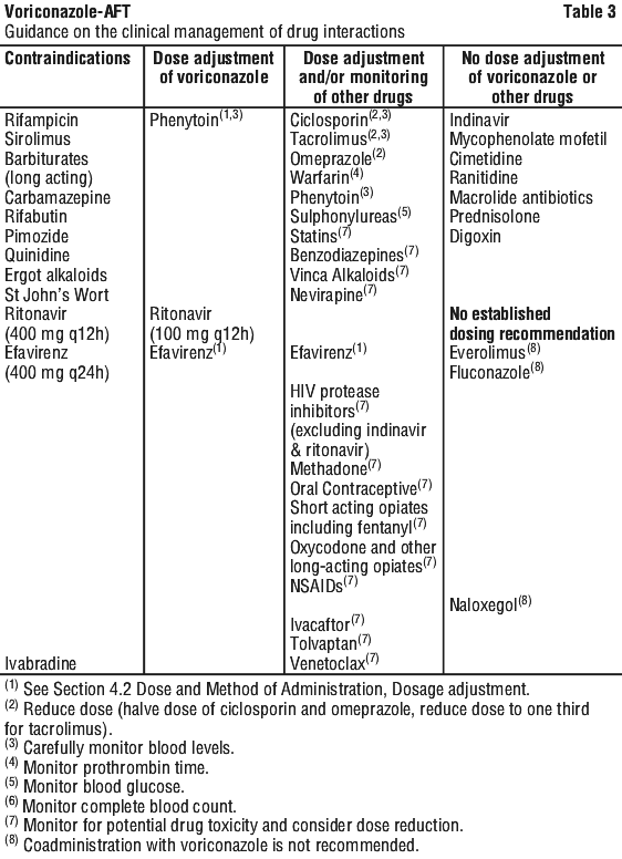 Coadministration of voriconazole with St John's Wort is contraindicated (see Section 4.5 Interactions with Other Medicines and Other Forms of Interactions).