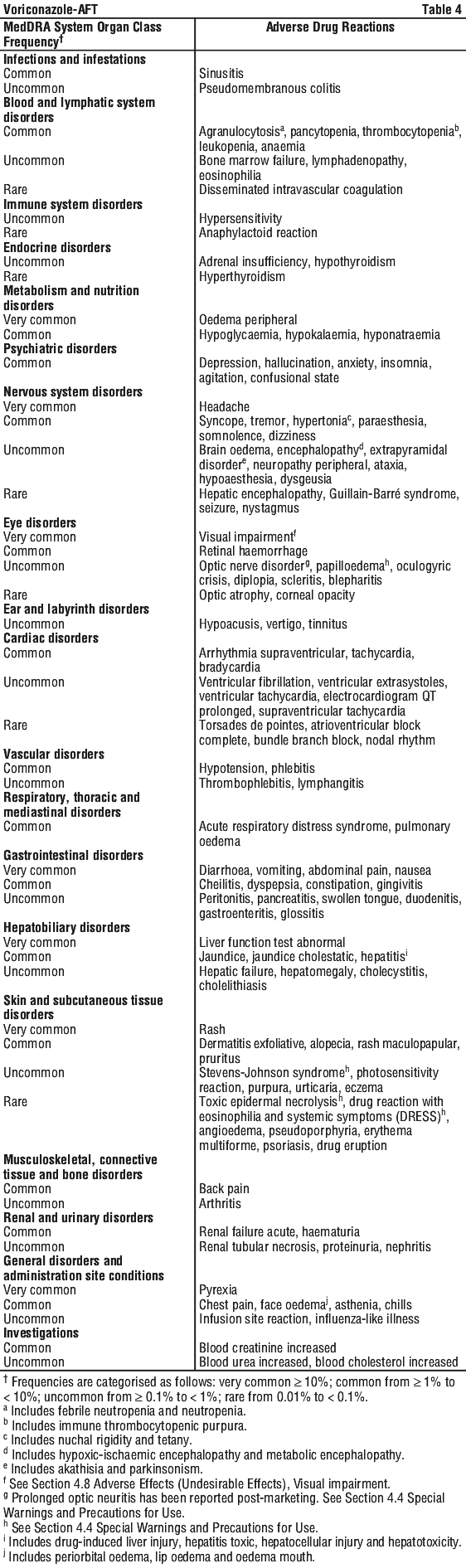 Voriconazole tablet and oral suspension are unavailable in this brand however, these dosage forms are available in other brands. Information obtained using oral formulations have been retained throughout the following sections in this product information for prescriber information.