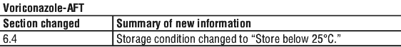 Following reconstitution of the lyophile with Water for Injections or 0.9% sodium chloride for infusion to 10 mg/mL, Voriconazole-AFT reconstituted concentrate can be stored at 2°C to 8°C in a refrigerator for up to 24 hours prior to use (see Section 4.2 Dose and Method of Administration, powder for injection).