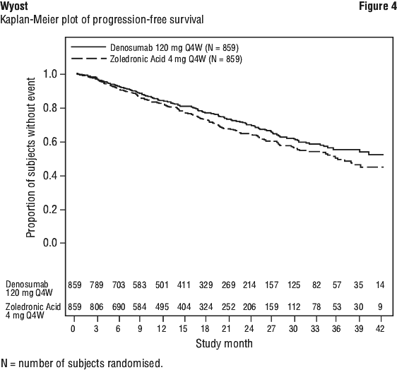WYOST contains the same medicines as other medicines containing denosumab, which are used to treat osteoporosis in women after menopause. WYOST, which is given at a higher dose once every 4 weeks, should not be used to treat osteoporosis.