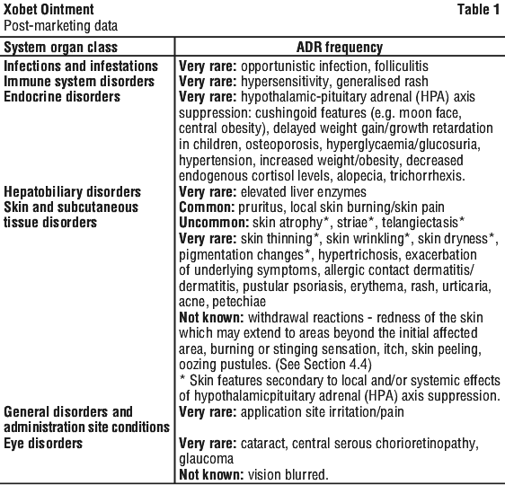 For more information, see Section 2. What should I know before I use Xobet Ointment? in the full CMI.