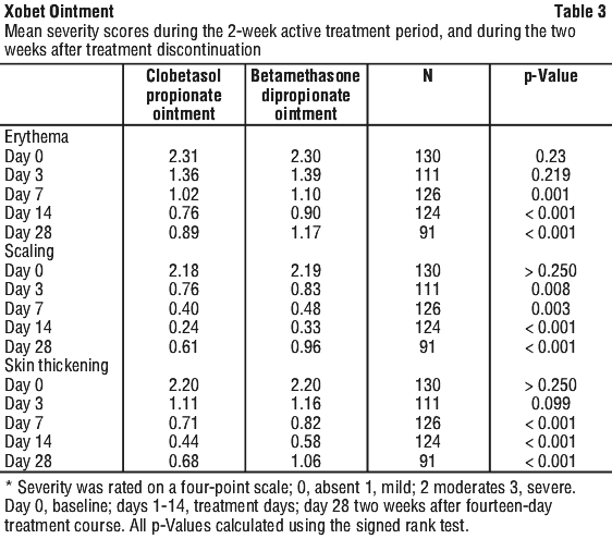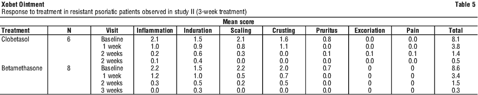 Treatment of psoriasis with corticosteroids such as Xobet (or its withdrawal) may make psoriasis more severe. Xobet may also cause rosacea and steroid acne to appear.