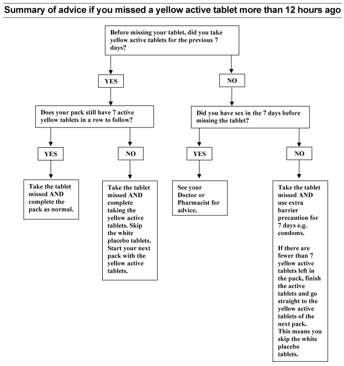 This medicine comes in a box containing 1, 2, 3, 4 or 6* blisters. Each blister contains 21 yellow active tablets and 7 white placebo tablets.