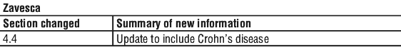 Cases of Crohn's disease (an inflammatory disease affecting the gut) have been reported in patients with Niemann-Pick type C disease treated with ZAVESCA.